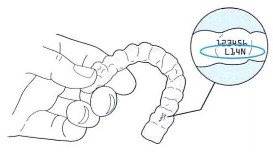 1、上顎用、下顎用、それぞれのステージ番号が正しいかを確認してから装着してください。
